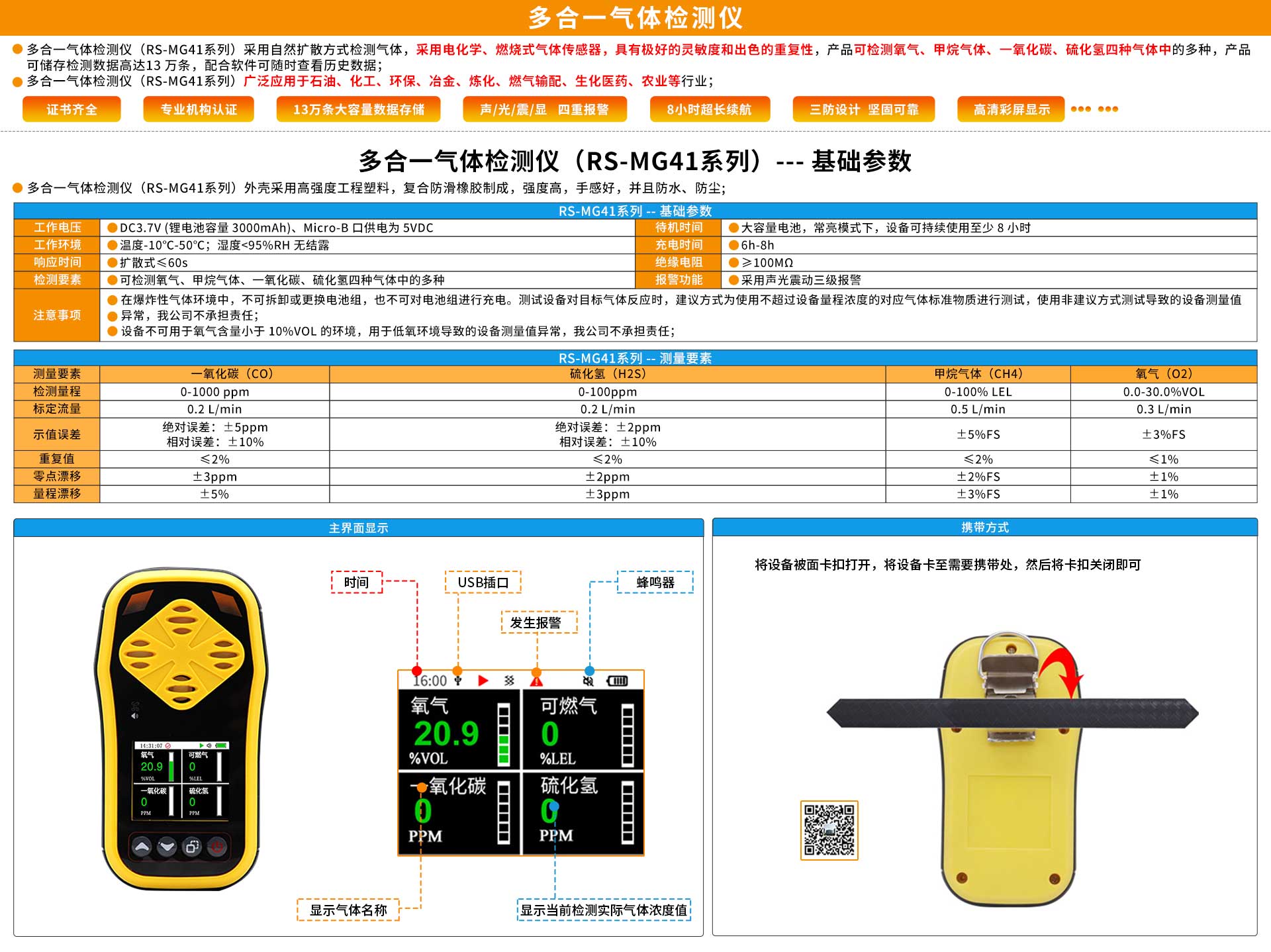 RS-MG41-X常规气体检测范围