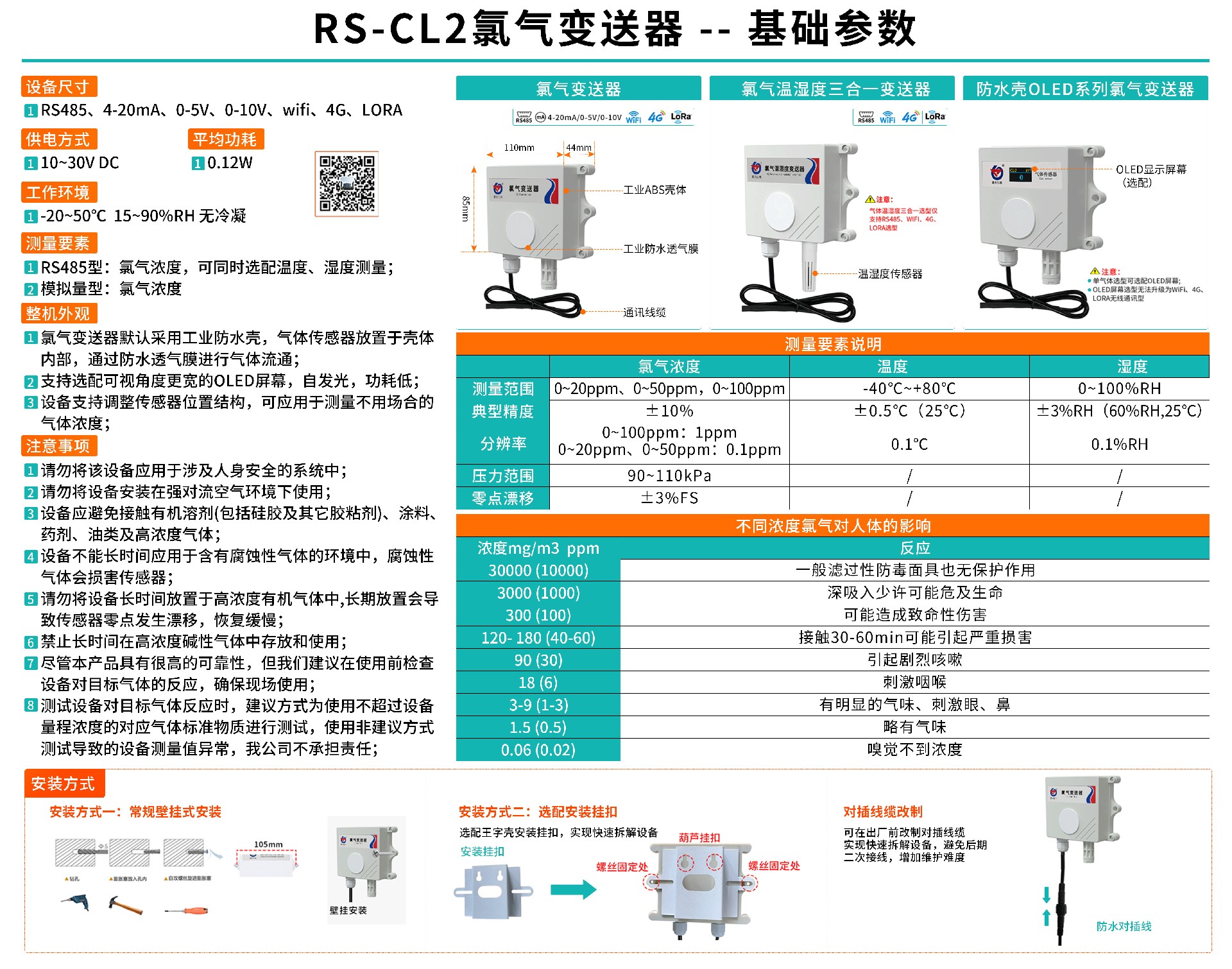 | 氯气温湿度三合一变送传感器(不支持模拟量型) |