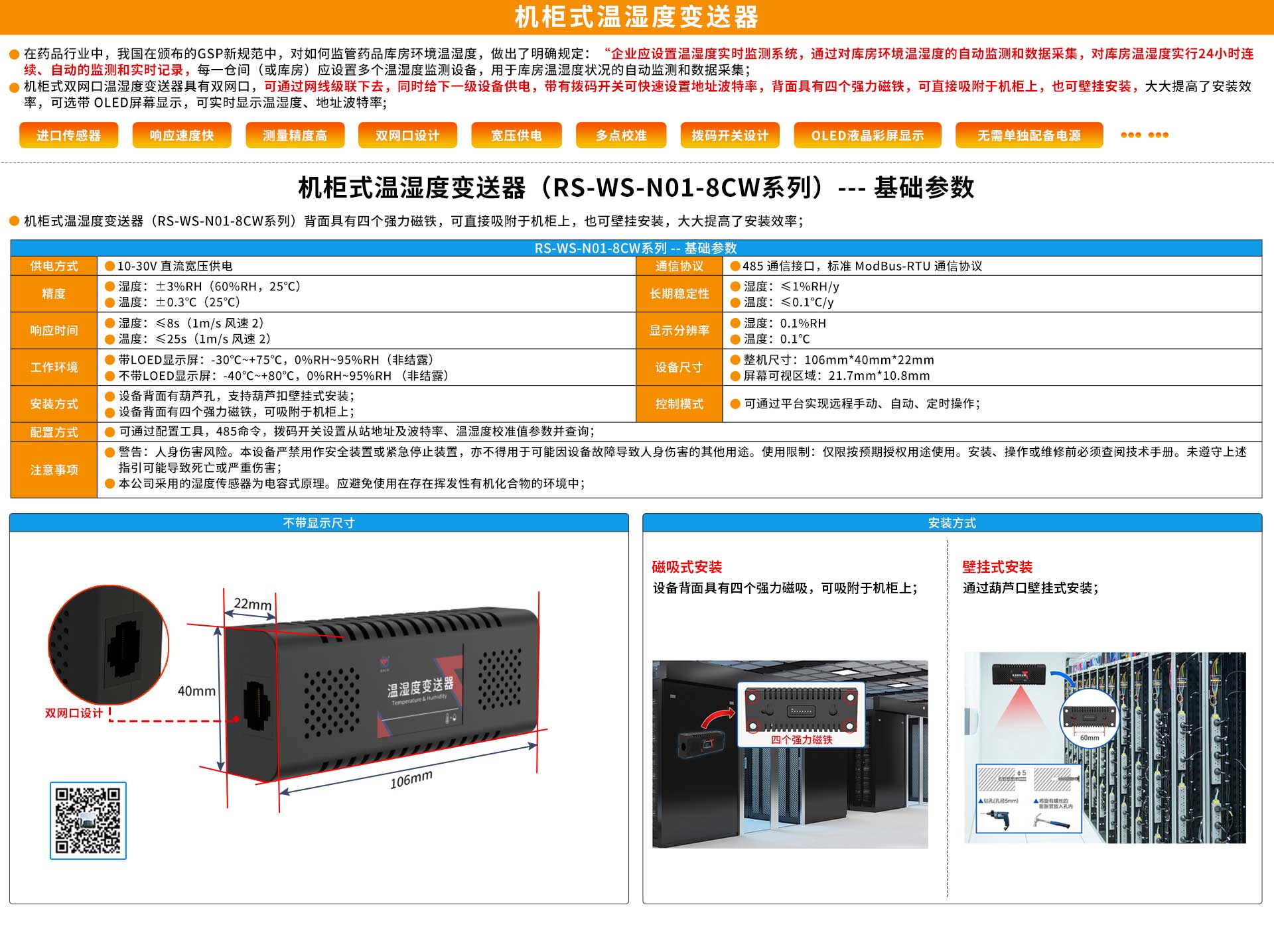 机柜式温湿度变送器(485型)使用说明书