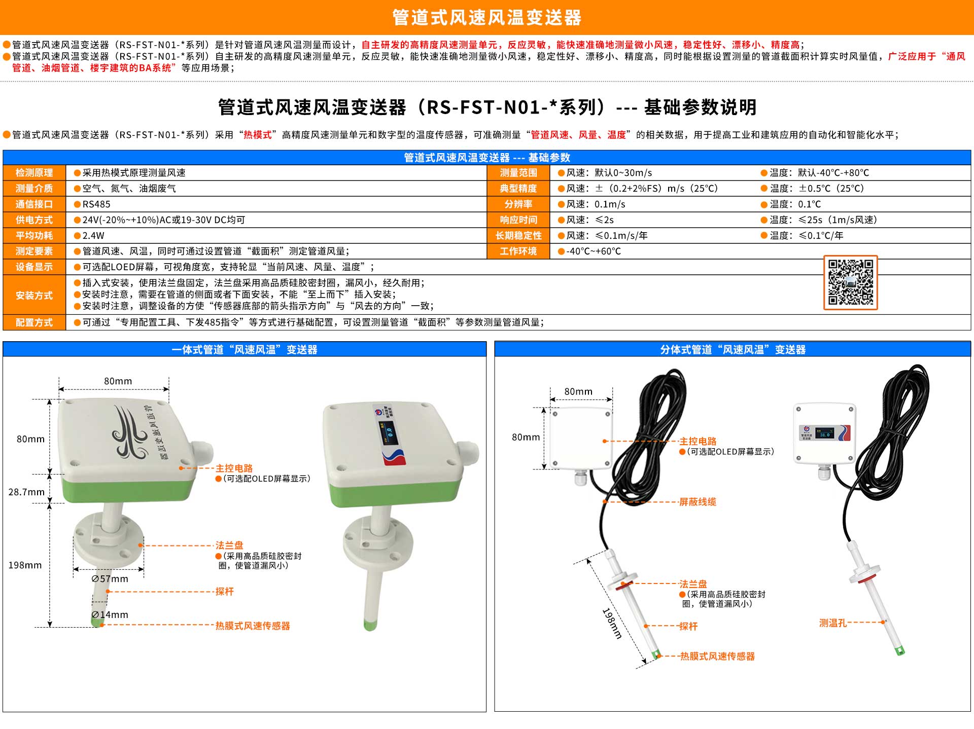| 量程 | 风速:默认0~30m/s 温度:默认-40℃-+80℃ |