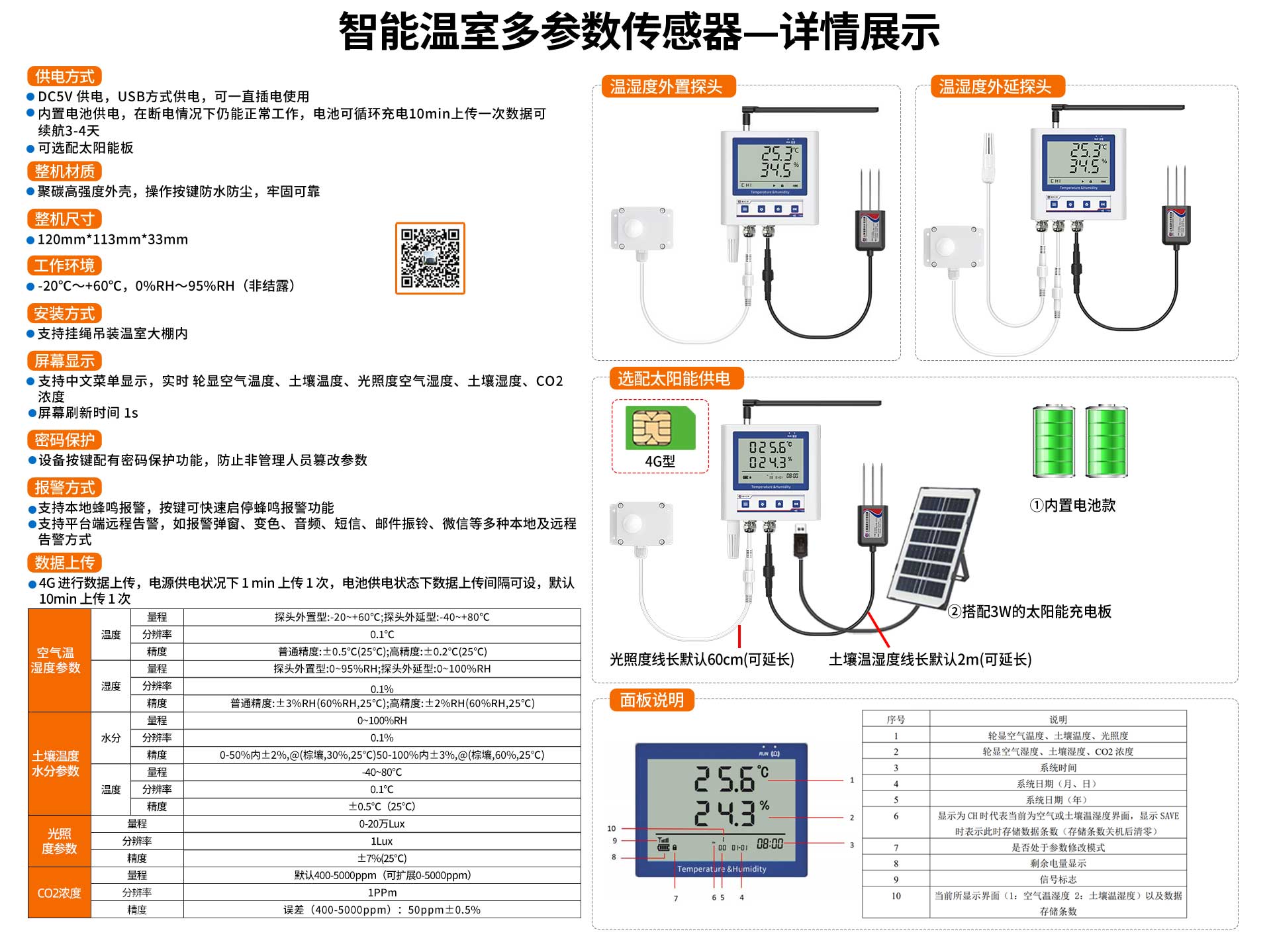 | 空气温湿度参数 | 温度 | 量程 | 探头外置型 | -20~+60℃ |