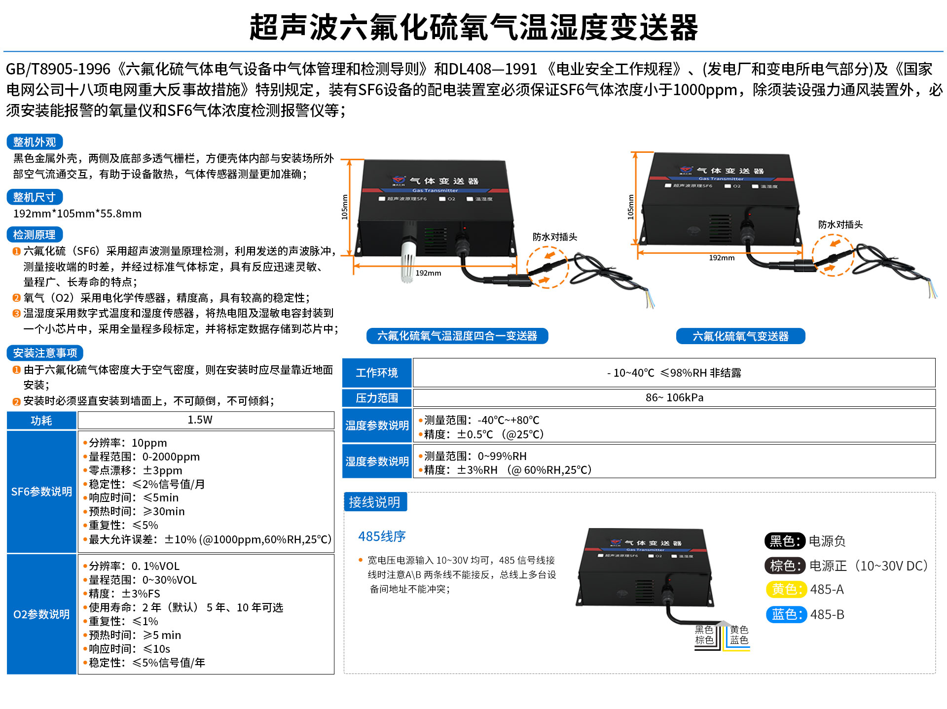 | SF6 最大允许误差 | ±10% (@1000ppm,60%RH,25℃) |
