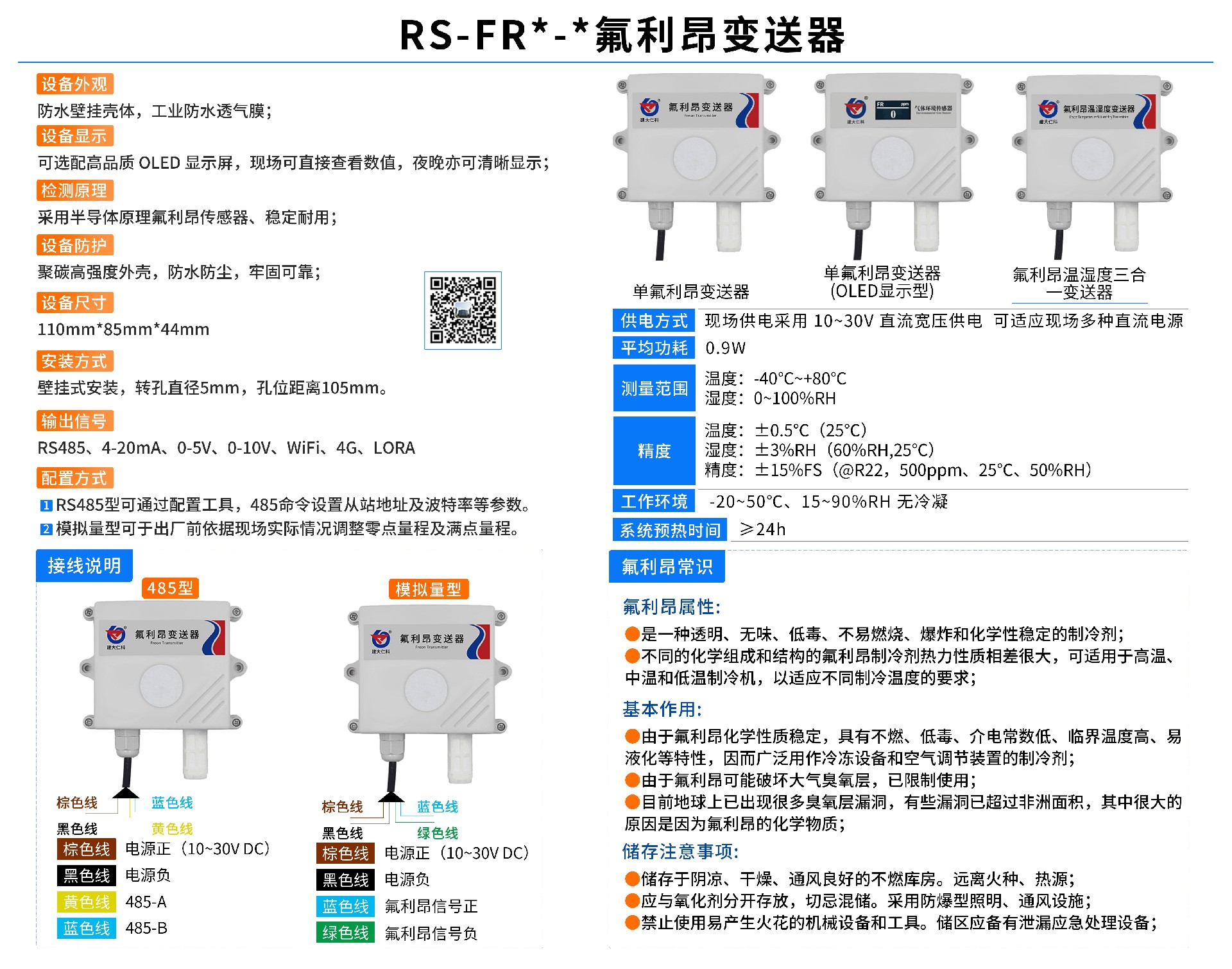 | 氟利昂温湿度一体变送器(模拟量型无此型号,带OLED显示无此型号) |
