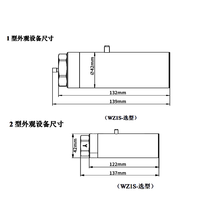 1 型外观:139*∅42mm 2 型外观:137*42mm