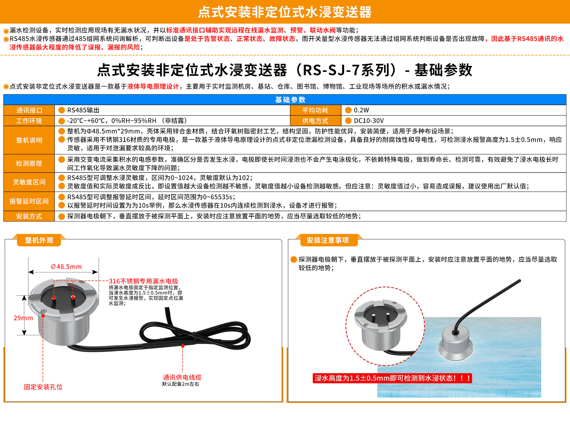 点式水浸传感器使用说明书